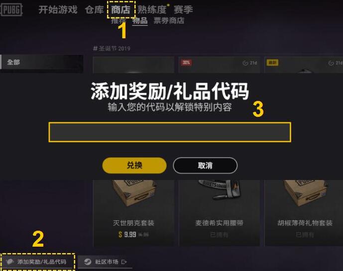 1进入PUBG游戏大厅 > “ 商店 " > 点击左下角“ 添加奖励/礼品代码 ” > 输入购买的CDK,即可兑换成功哟